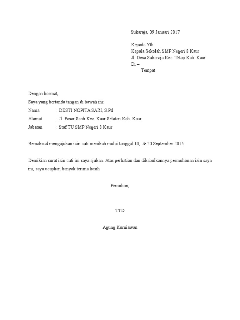Contoh Surat Izin Cuti Guru Untuk Kepentingan Keluarga Syilent