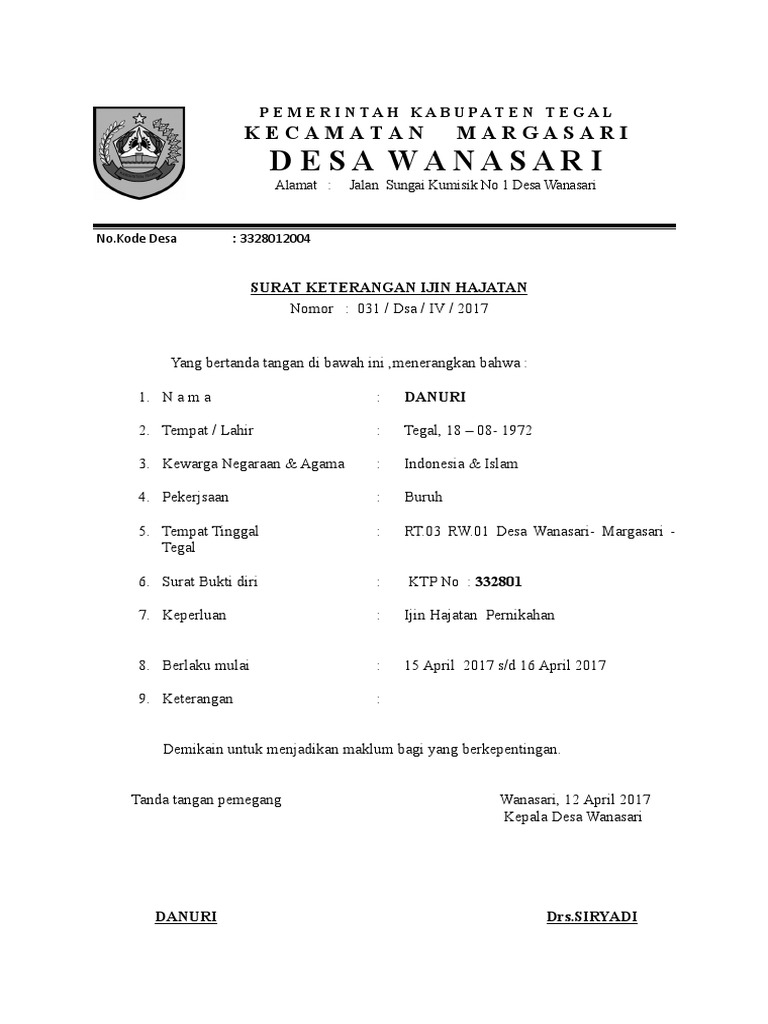 Contoh Surat Izin Hajatan Dari Desa