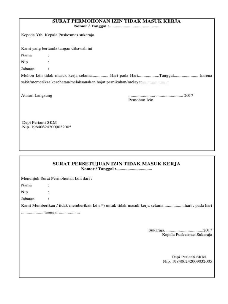 Pdf Contoh Surat Izin Tidak Masuk Kerja Faiz Hidayatulloh