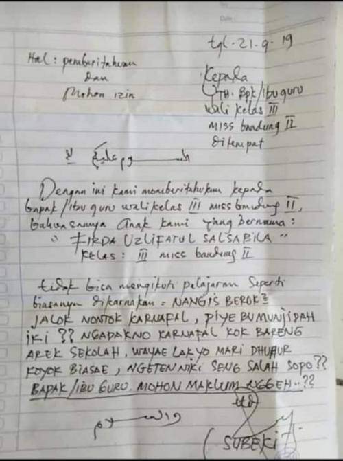 Viral Orangtua Siswa Di Jombang Tulis Surat Izin Nyeleneh Ini