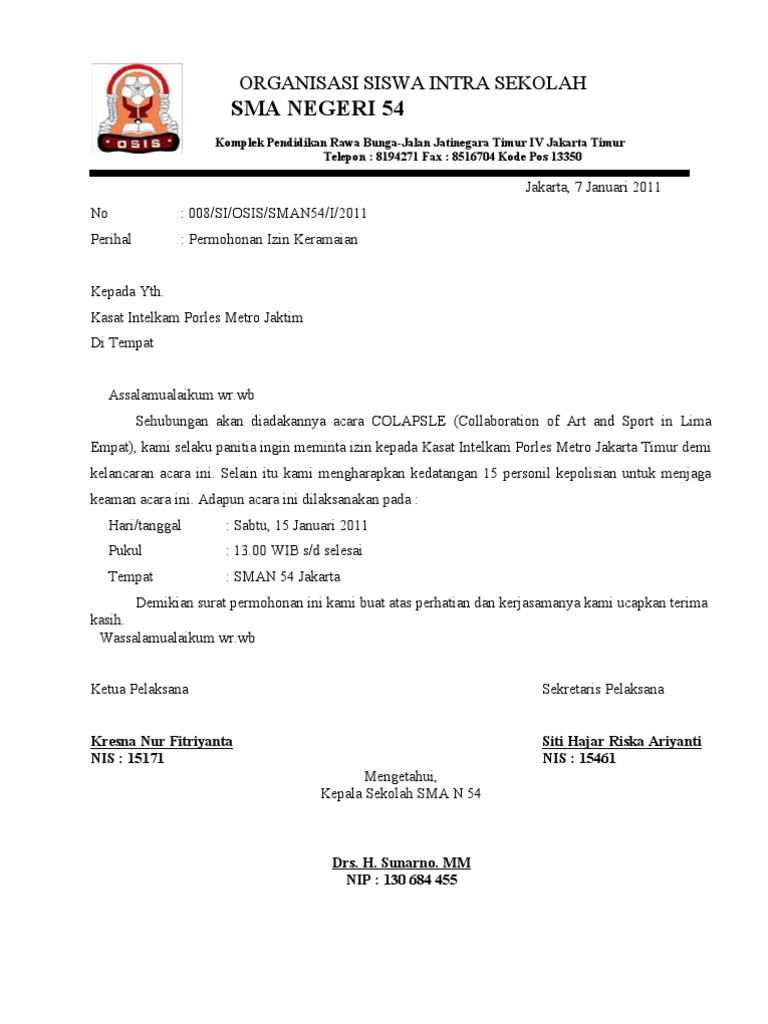 Contoh Surat Izin Kegiatan Osis Di Sekolah Lengkap