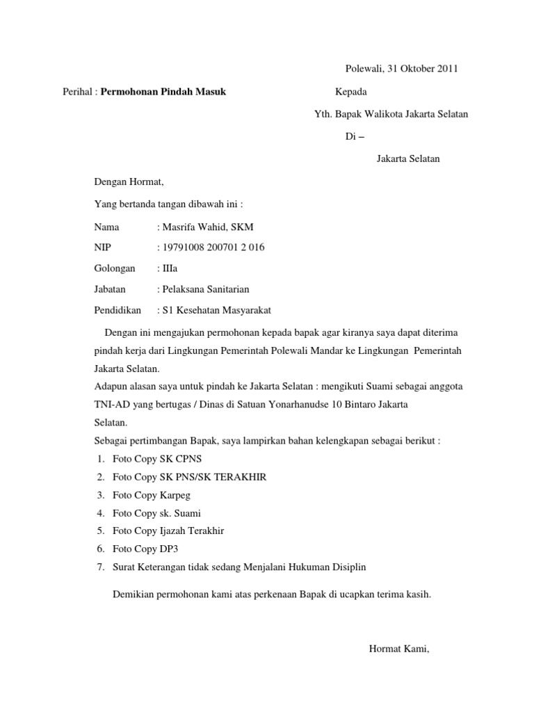 Contoh Surat Permohonan Pindah Tugas Tni