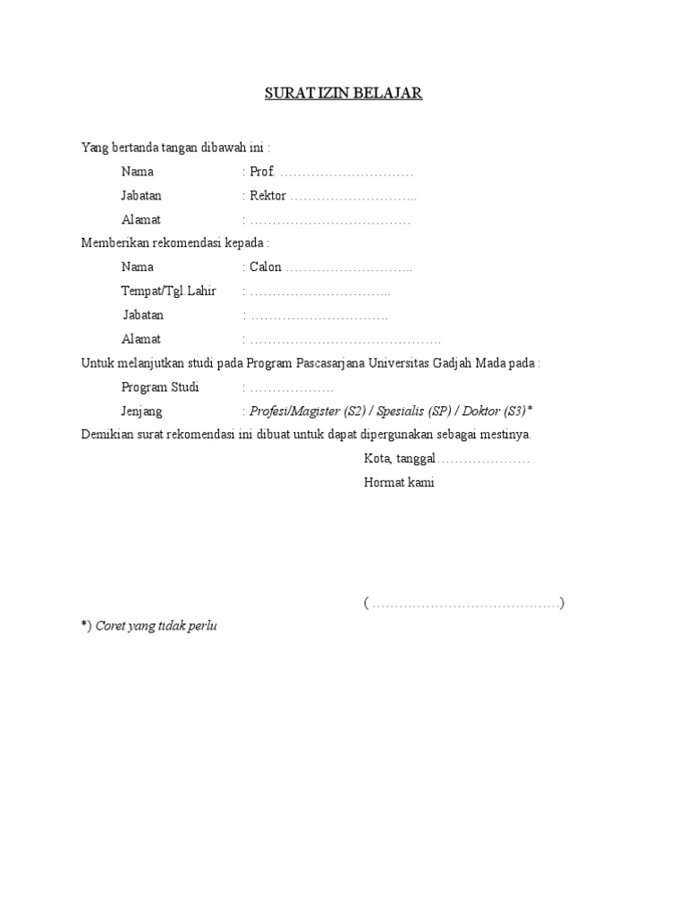 Contoh surat permohonan izin belajar. Untuk melanjutkan studi pada program pascasarjana universitas gadjah mada pada. Laporan hasil pelaksahaan tugas belajar atau izin belajar pada akhir melaksanakan penugasan.