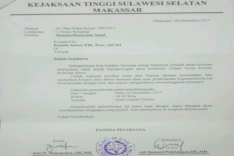 Namanya Dicatut Minta Sumbangan Natal 2 Jaksa Lapor Polisi