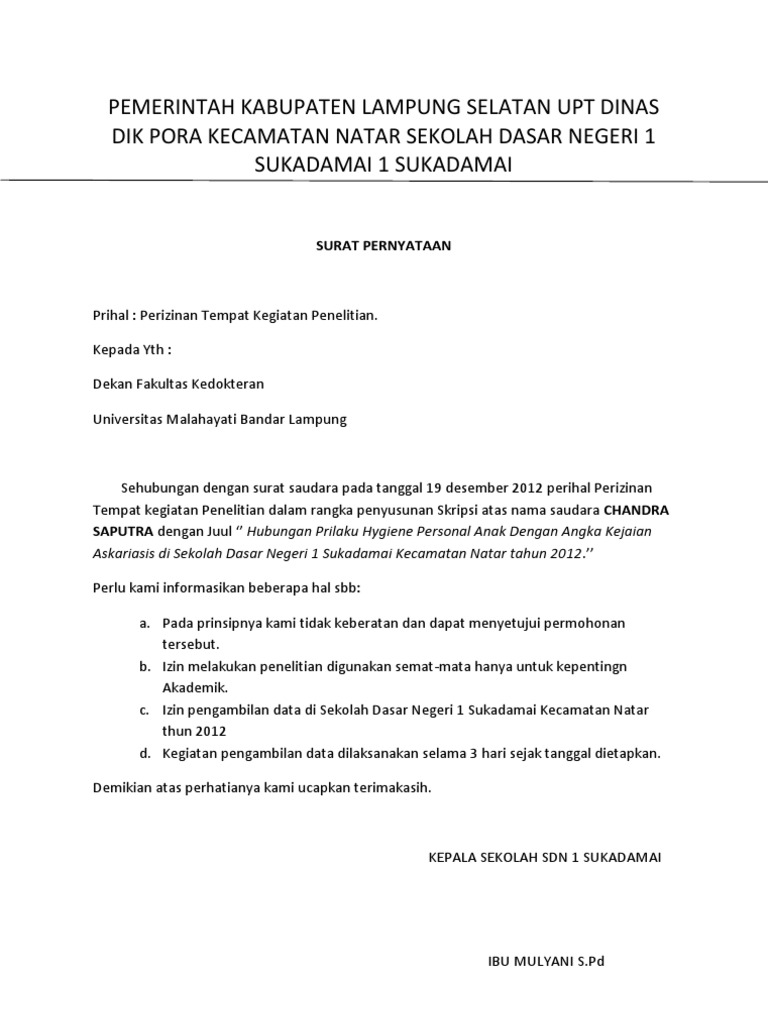 Contoh Surat Balasan Izin Penelitian Dari Puskesmas Doylc Asia