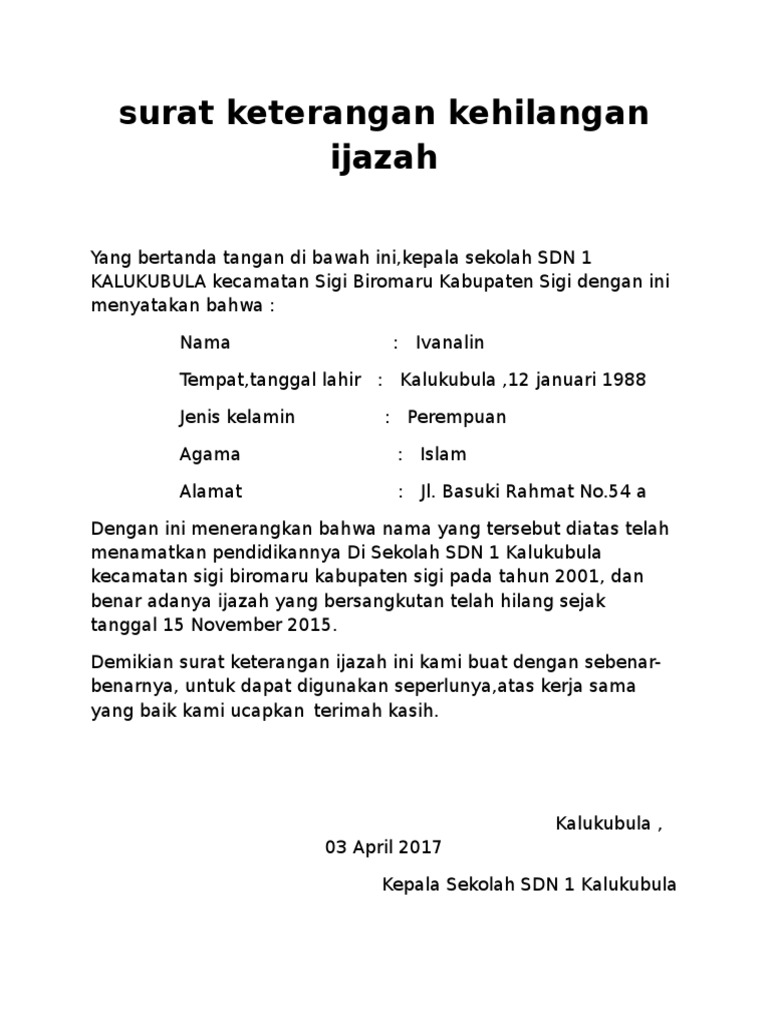 Contoh Surat Izin Tidak Masuk Sekolah Karena Membuat Ktp E Ktp