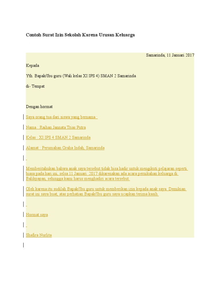 Contoh Surat Izin Tidak Sekolah Karena Acara Keluarga Docx