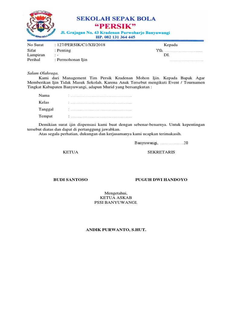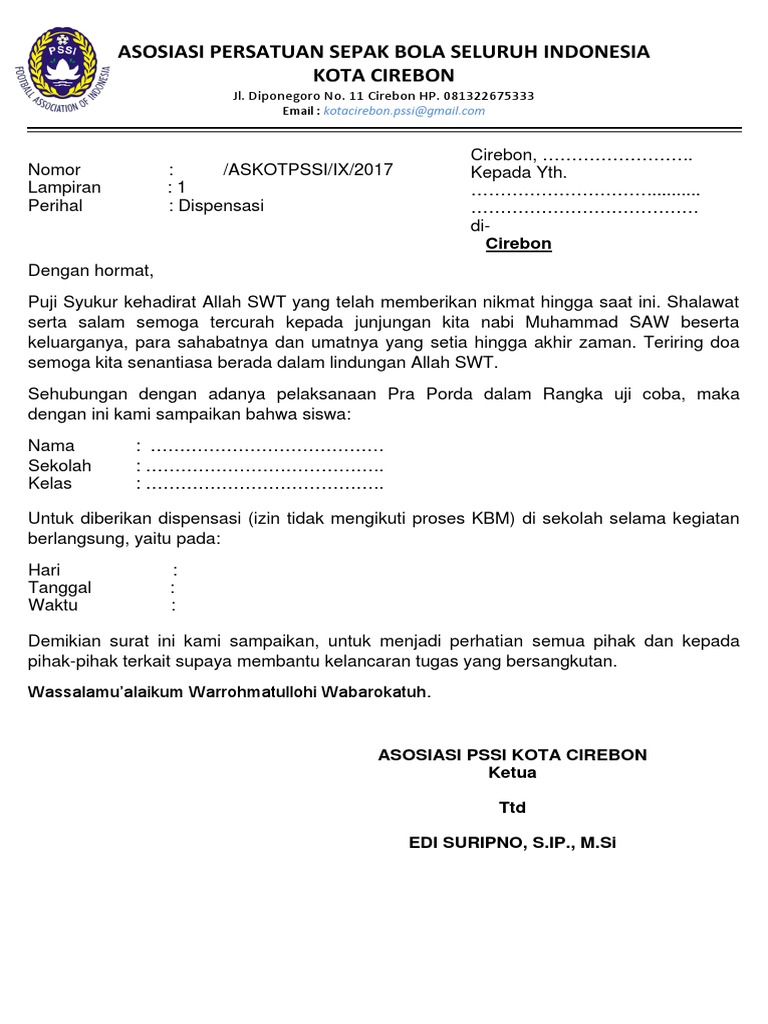 92 Berikut Surat Izin Dispensasi Sepak Bola Download Zip Doc