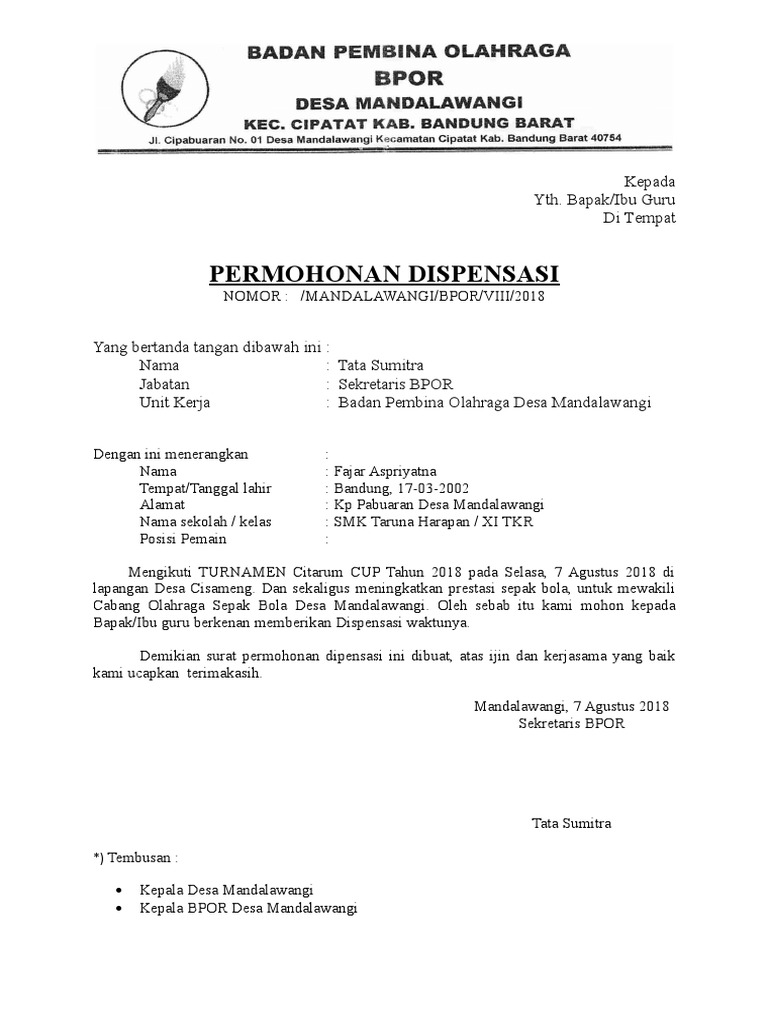 Download Contoh Surat Dispensasi Yang Baik Dan Benar