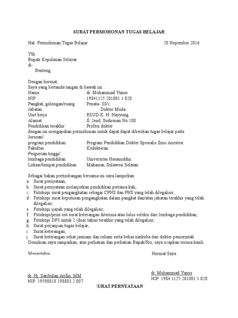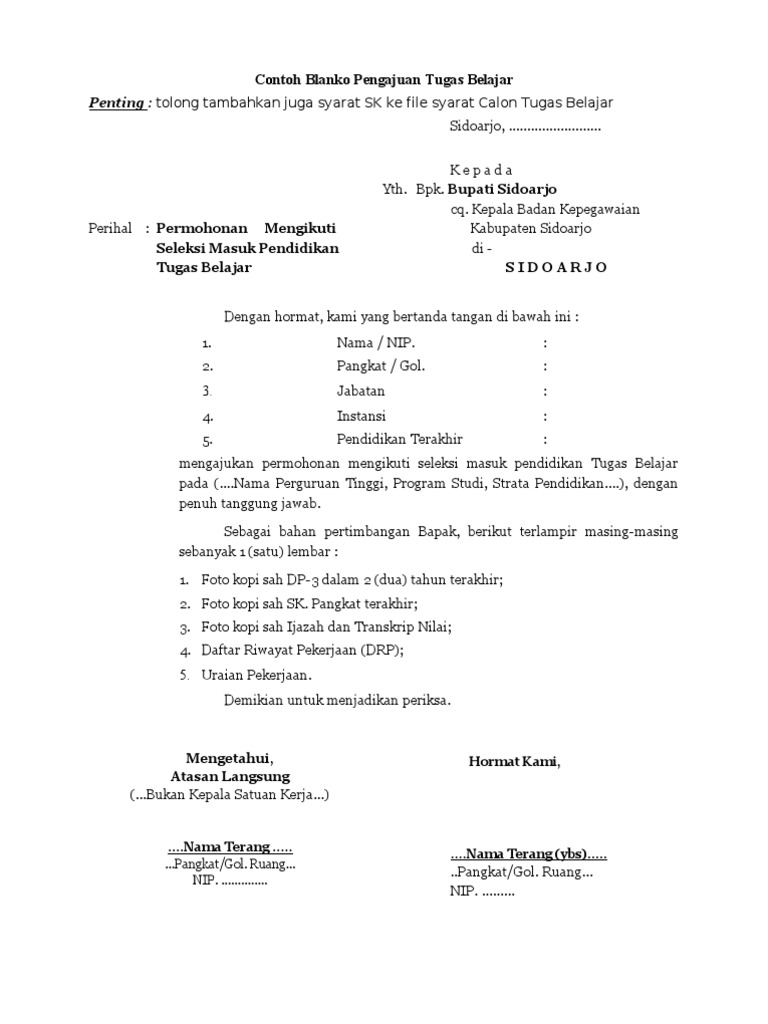 Format Pengajuan Ijin Belajar Dan Tugas Belajar Selamat Datang