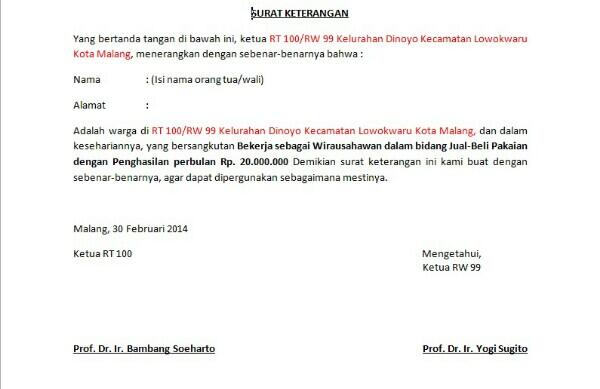 Contoh Surat Keterangan Tidak Mampu Dari Desa Ketua Rw Ketua