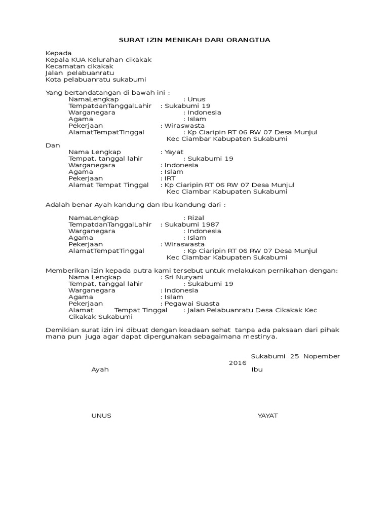 Contoh Surat Izin Menikah Dari Ortu