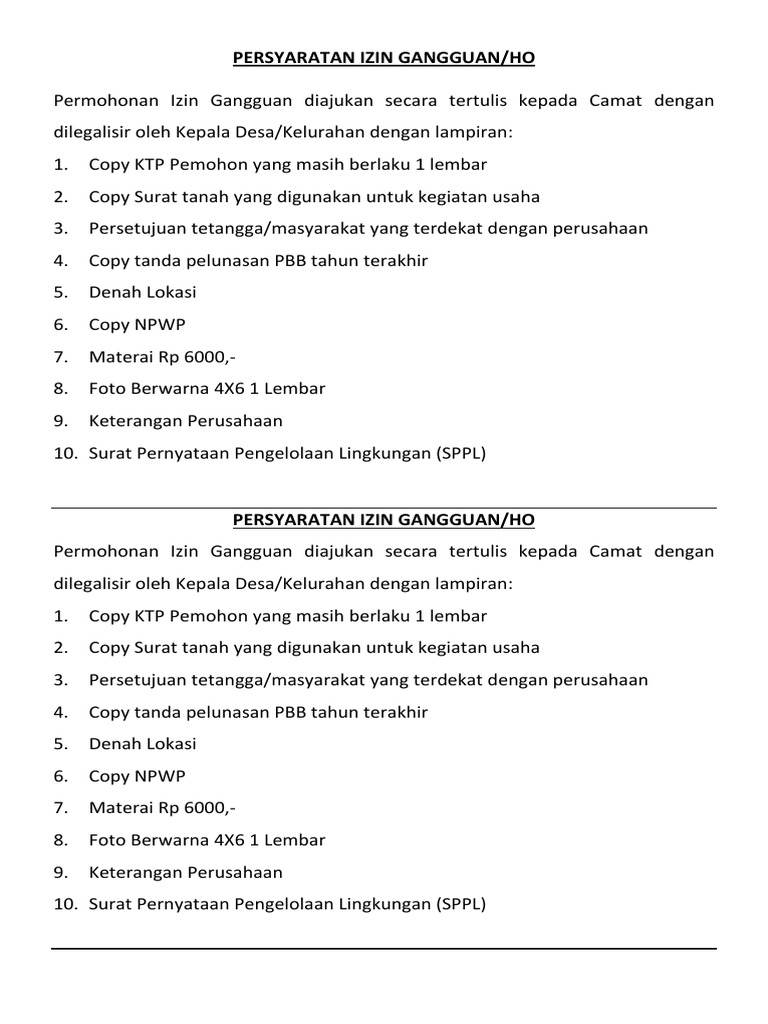 Permohonan Surat Izin Gangguan Ho Kerja Usaha