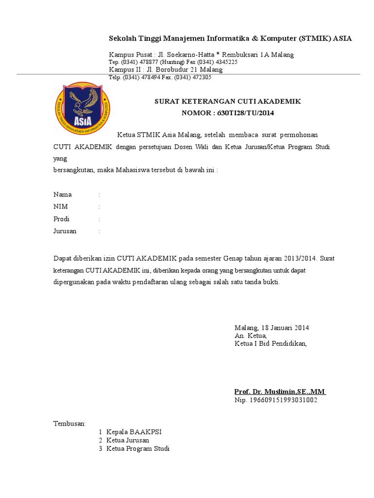 Cara Menulis Surat Permohonan Cuti Kuliah Kumpulan Contoh Surat