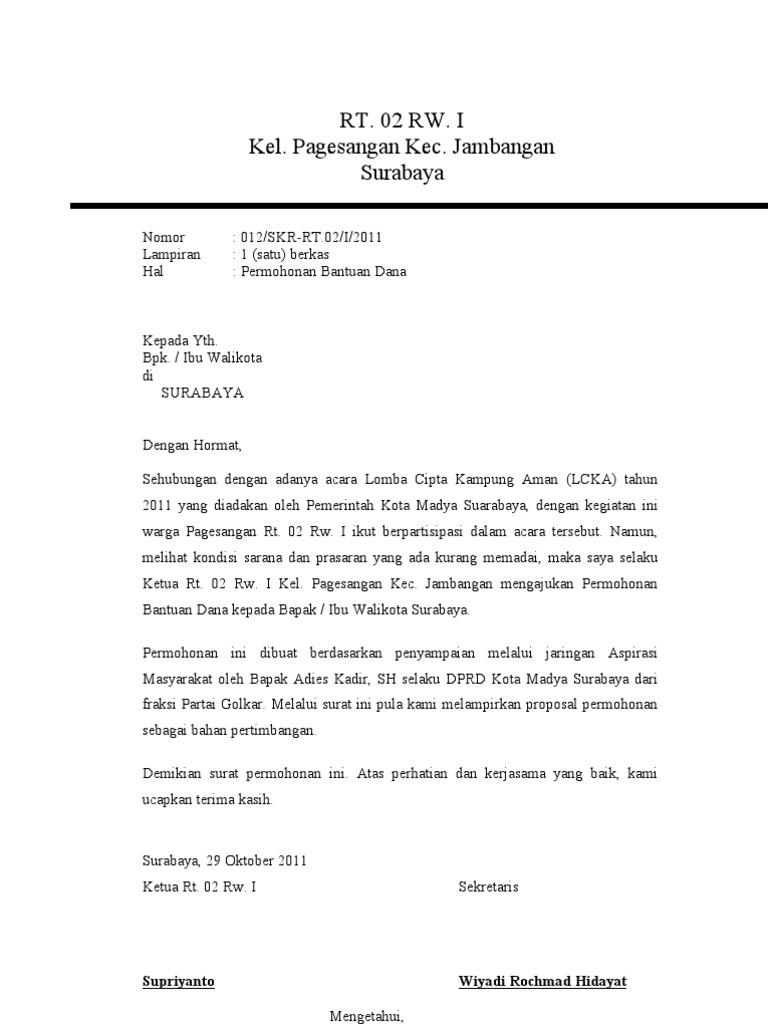Contoh Surat Izin Kegiatan Ke Rt