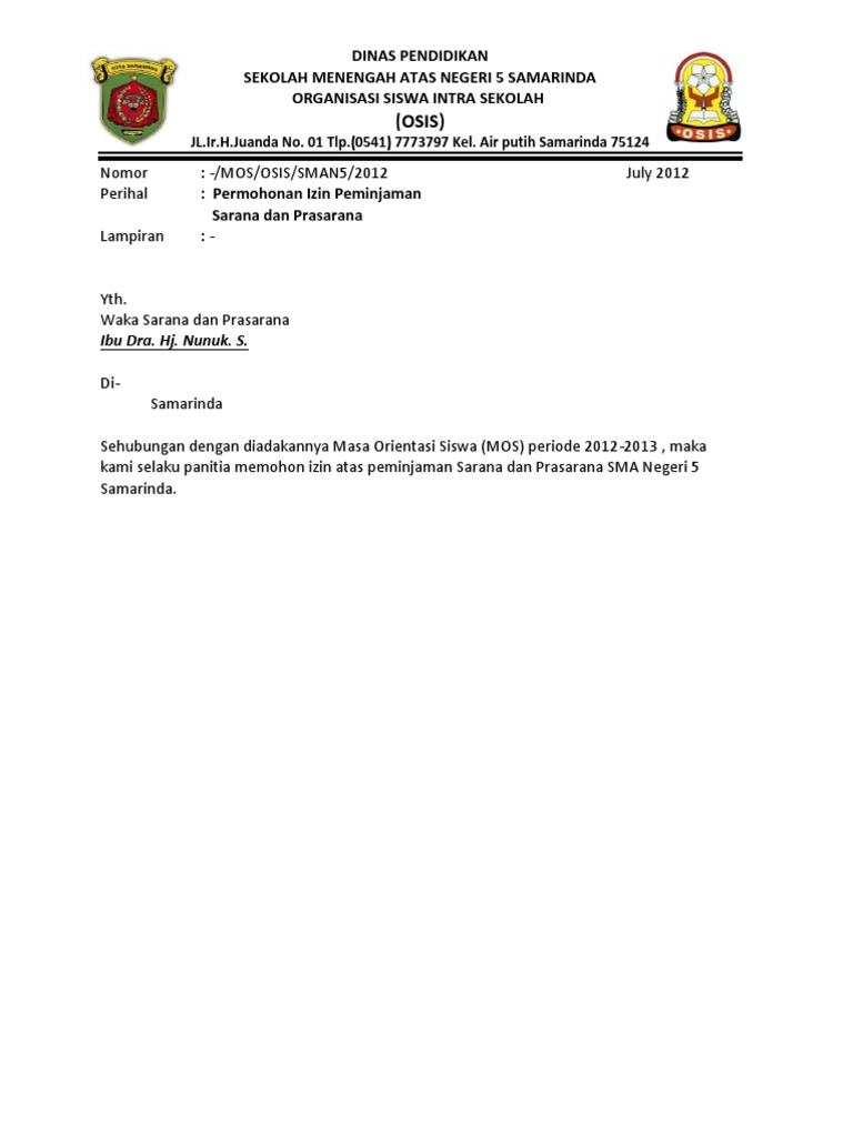 Contoh Surat Dinas Osis Permohonan Izin