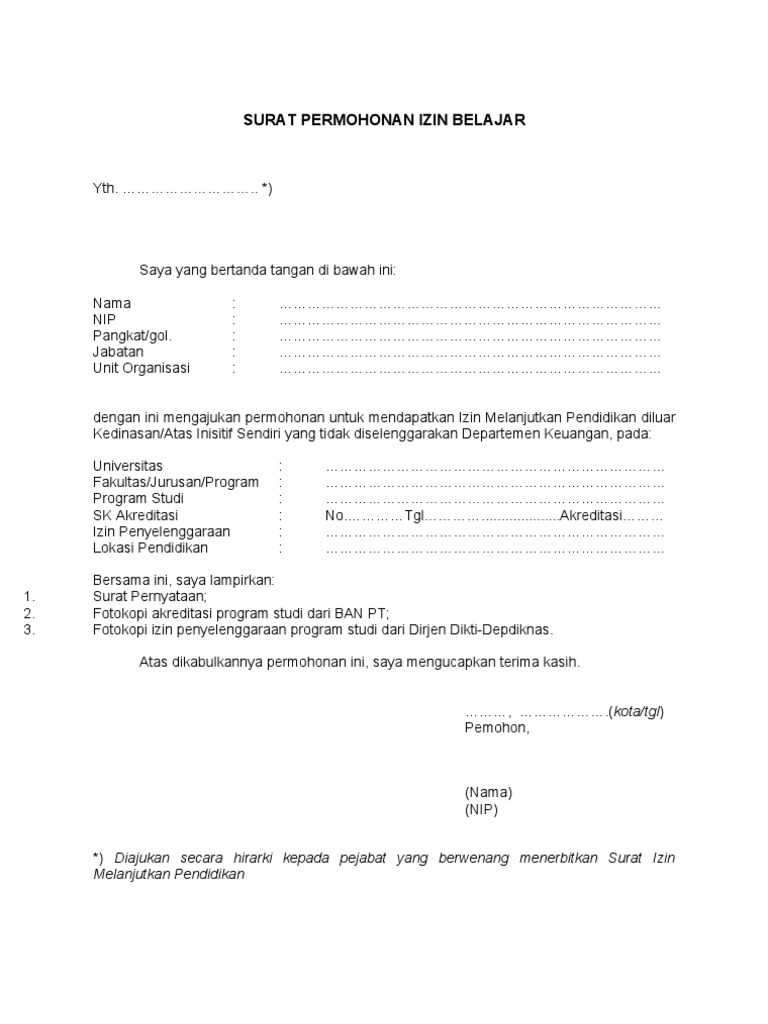 Contoh Surat Izin Belajar Untuk Kuliah Opdbn Operator Sekolah