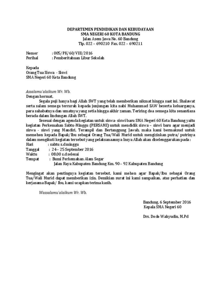 Contoh Surat Dispensasi Sekolah Untuk Mengikuti Acara Contoh Surat