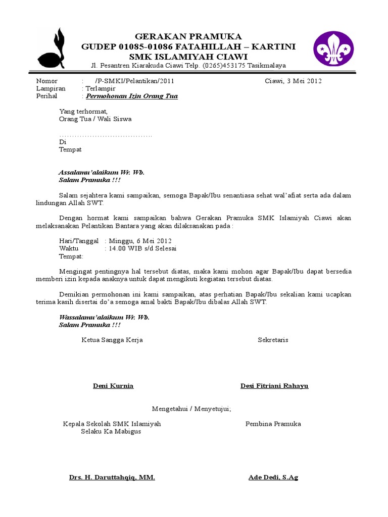 Contoh Surat Izin Orangtua Kemping Pramuka Mpls Lihatlagi Com
