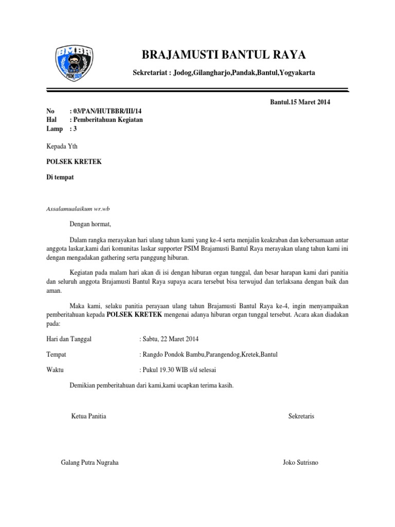 Contoh Surat Pemberitahuan Kegiatan Ke Kepolisian Izin Keramaian