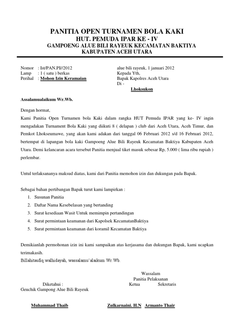Contoh Surat Ijin Mengadakan Keramaian