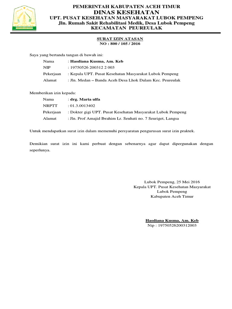 Contoh Surat Izin Atasan Puskesmas Docx