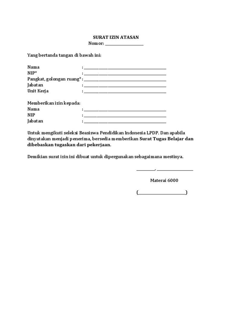 Contoh Surat Ijin Atasan Pdf Document