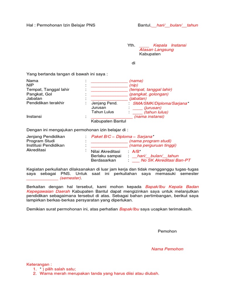 Inilah Contoh Surat Izin Belajar Untuk Pns Semua Surat