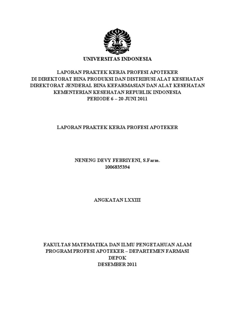 Universitas Indonesia Laporan Praktek Kerja Profesi Apoteker Di