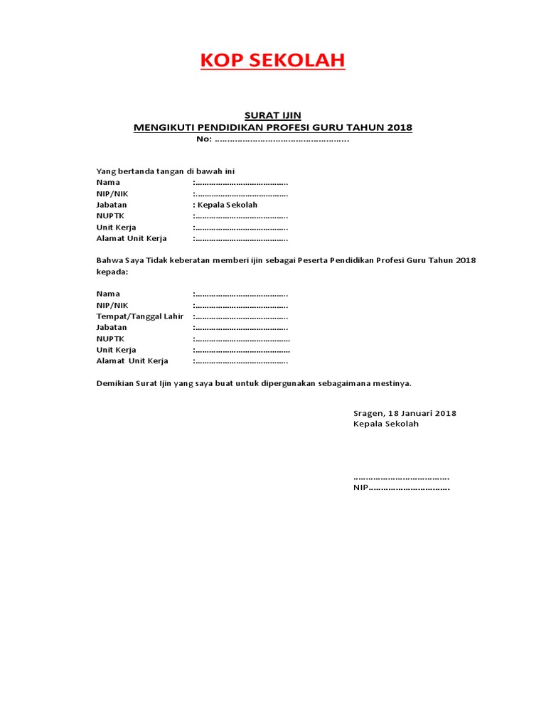 Contoh Surat Izin Sakit Guru Kepada Kepala Sekolah Guru Sekolah