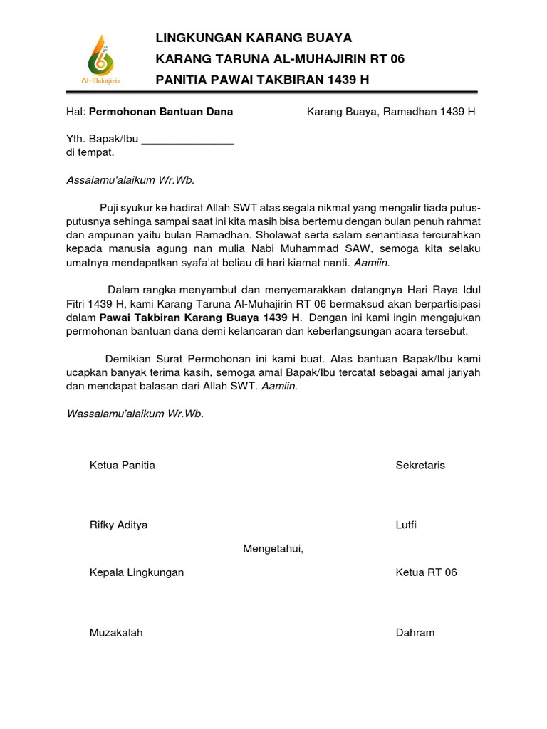 Contoh Surat Permohonan Bantuan Dana Kegiatan Yang Benar