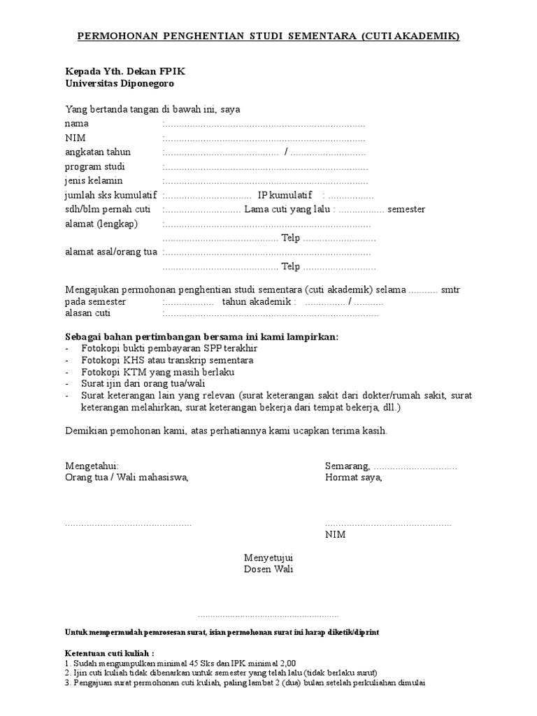 Contoh Surat Permohonan Cuti Kuliah Indonesia Terpercaya