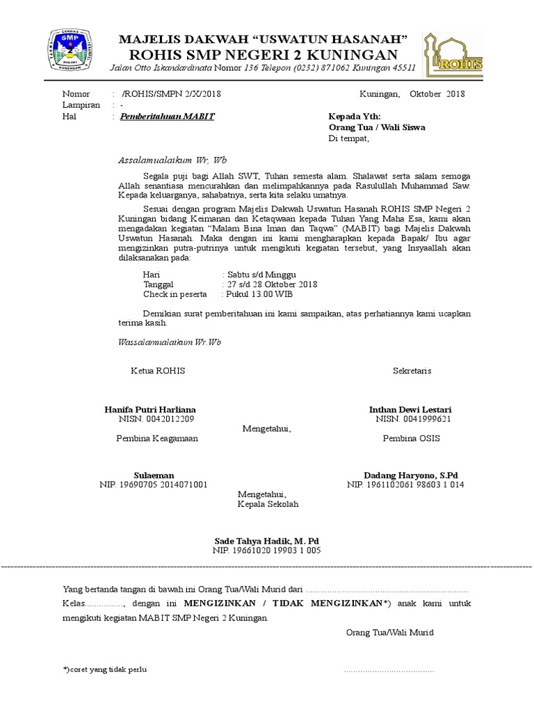 Surat Ijin Orang Tua Untuk Mabit Official Pk Imm Stiemj Blog