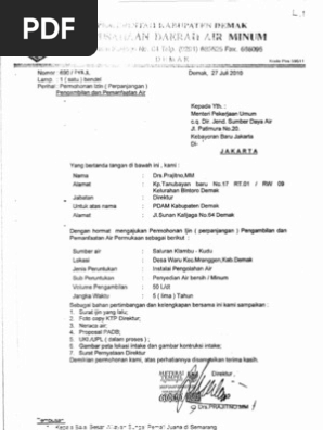 Contoh Pengajuan Izin Penggunaan Sumber Daya Air